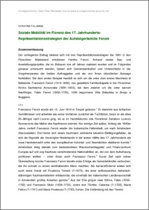 Soziale Mobilität im Florenz des 17. Jahrhunderts: Repräsentationsstrategien der Aufsteigerfamilie Feroni