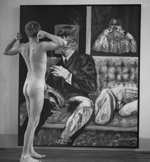 Dabei zeigte sich Uwe Lausen – obgleich Autodidakt – bestens über das aktuelle internationale Kunstgeschehen informiert. Eine wichtige Rolle in seiner fruchtbaren Auseinandersetzung mit der Kunst seiner Generation spielte die Galerie Friedrich & Dahlem, die seit 1963 in München bestand und dort noch in der ersten Hälfte der 1960er Jahre mit frühen Präsentationen von Walter Stöhrer, Horst Antes, Cy Twombly, Georg Baselitz und Gerhard Richter für Furore sorgte. [19] Für Lausen war die aus Düsseldorf übernommene Schau Britische Malerei der Gegenwart im August 1964 von besonderer Bedeutung. [20] In München könne man nun endlich erfahren, wie Pop-Art in England produziert werde, schrieb Peter M. Bode in diesem Zusammenhang. [21] Nicht nur Uwe Lausen sah dort also vermutlich zum ersten Mal britische Pop-Art im Original, unter anderem von R. B. Kitaj, Peter Blake, David Hockney, besagtem Allen Jones oder Richard Hamilton. Mit Francis Bacon – es wurden nicht ausschließlich Pop-Künstler gezeigt – muss sich Lausen für einen weiteren Maler begeistert haben, ließ er sich doch stundenlang vor dessen Papst-Studien nieder. [22] Die Ergebnisse dieser intensiven Auseinandersetzung finden sich zunächst in den brutal verstümmelten »Körperklumpen« von 1964 und 1965 wieder.